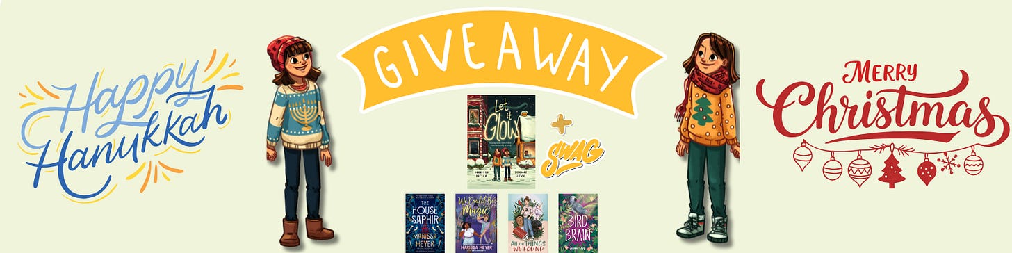 It’s officially the beginning of the holiday season, so what better time to launch a giveaway! Joanne Levy (my assistant and co-writer for LET IT GLOW) and I are giving away prize packs featuring LET IT GLOW, swag, and copies of our recent books.