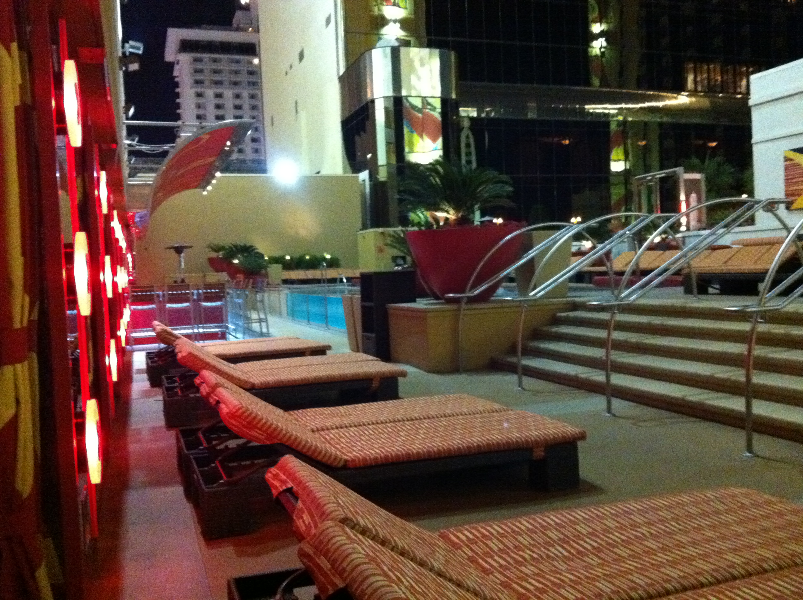 Location: Rooftop lounge in Vegas. I went to the Hideout H2O at the Golden Nugget. Unfortunately, at 7:00 in the evening, the bar was closed! Wha?? But I still got to sit and write for a little while.