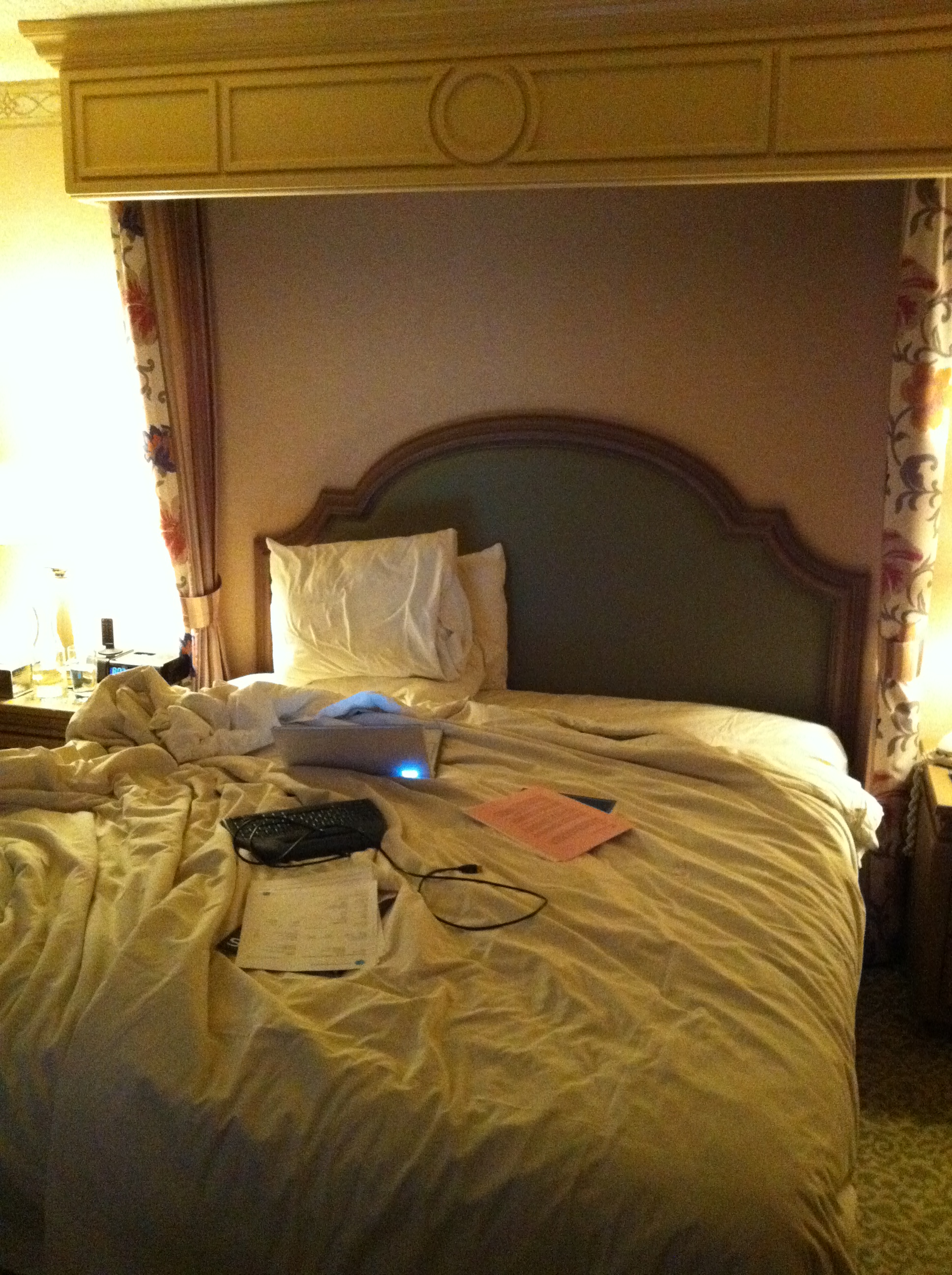 Cons: I almost dozed off a couple times (although I was also writing after four hours of sleep, a 5 a.m. wake-up, and three school presentations, so there may have been extenuating circumstances). It would have been nice to have a desk instead of writing in bed, but this hotel room didn’t have one.